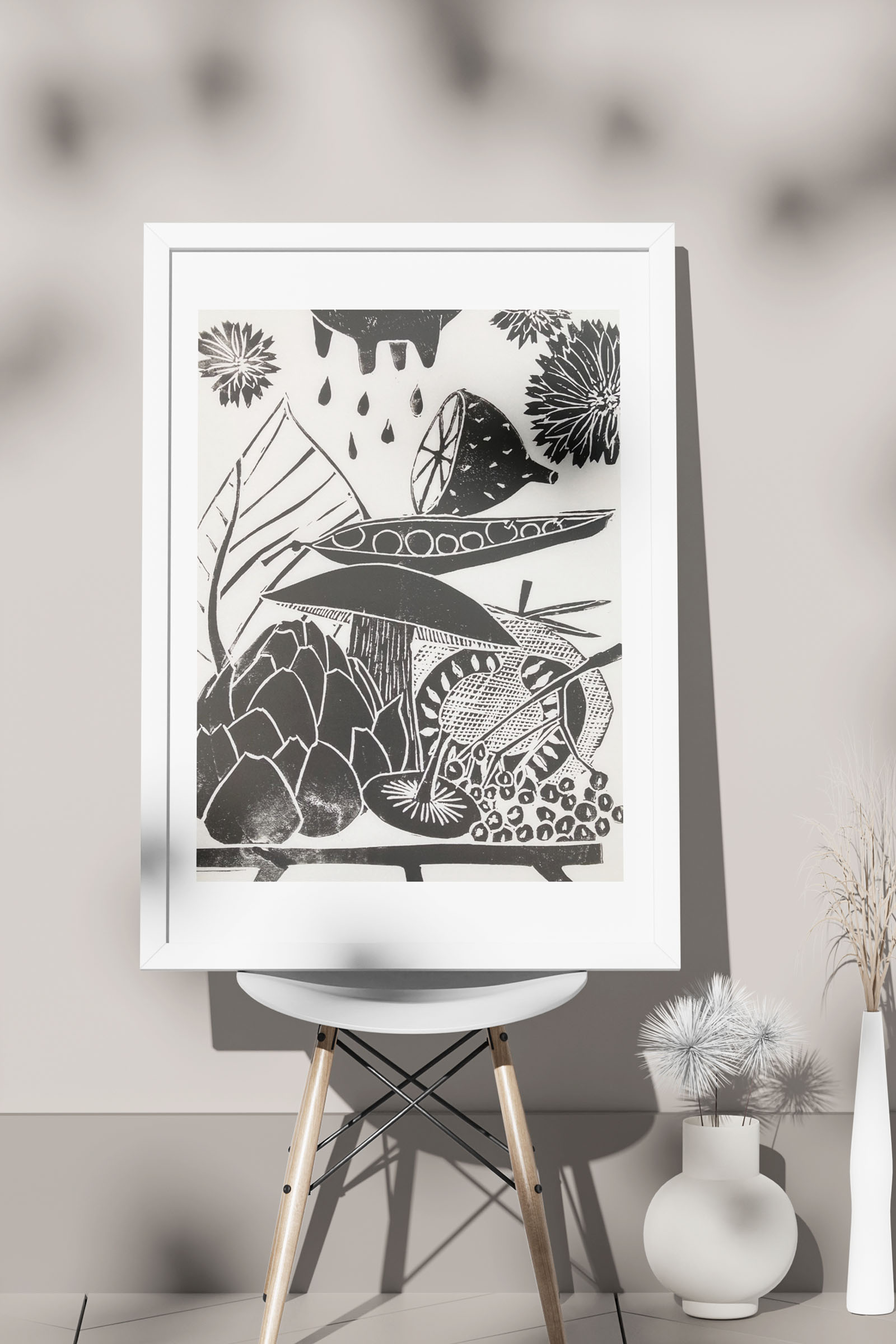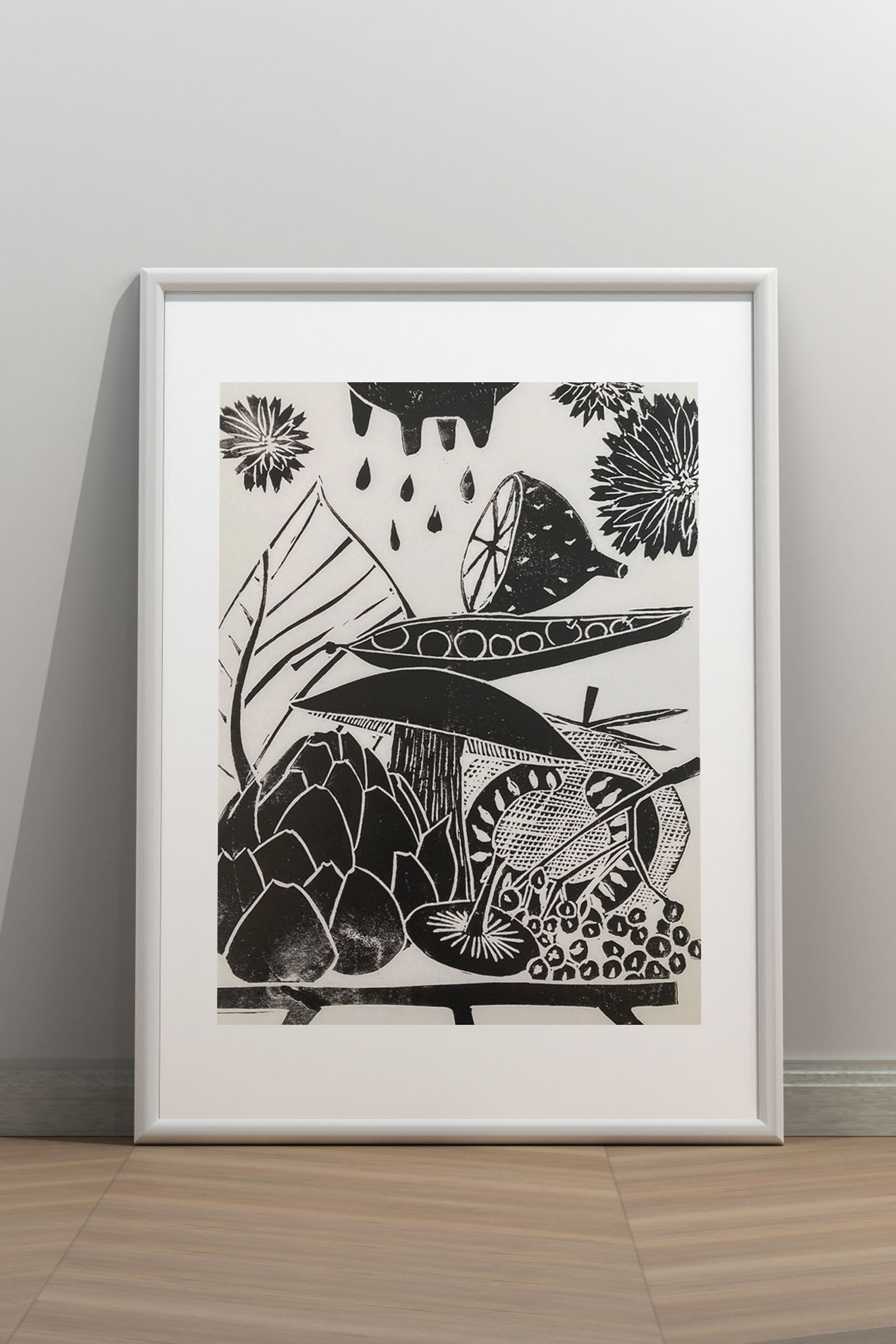 Motiv 300 x 200 mm gedruckt mit schwarzer Linolfarbe